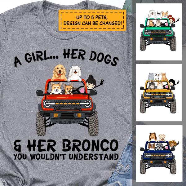 A girl, her dogs and her bronco dog, cat personalized T-Shirt TS-HR138
