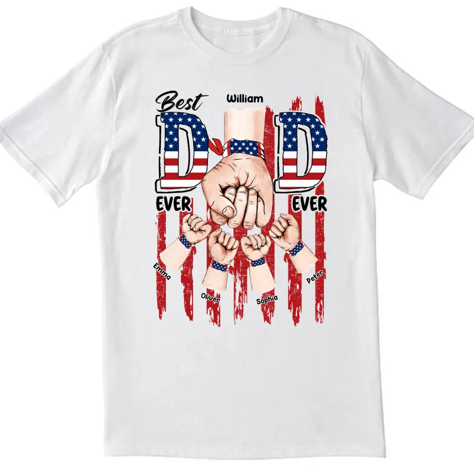 Best Dad Ever Ever American Flag - Personalized T-shirt, 4th of July Gift For Dad, Independence Day Dad Gift