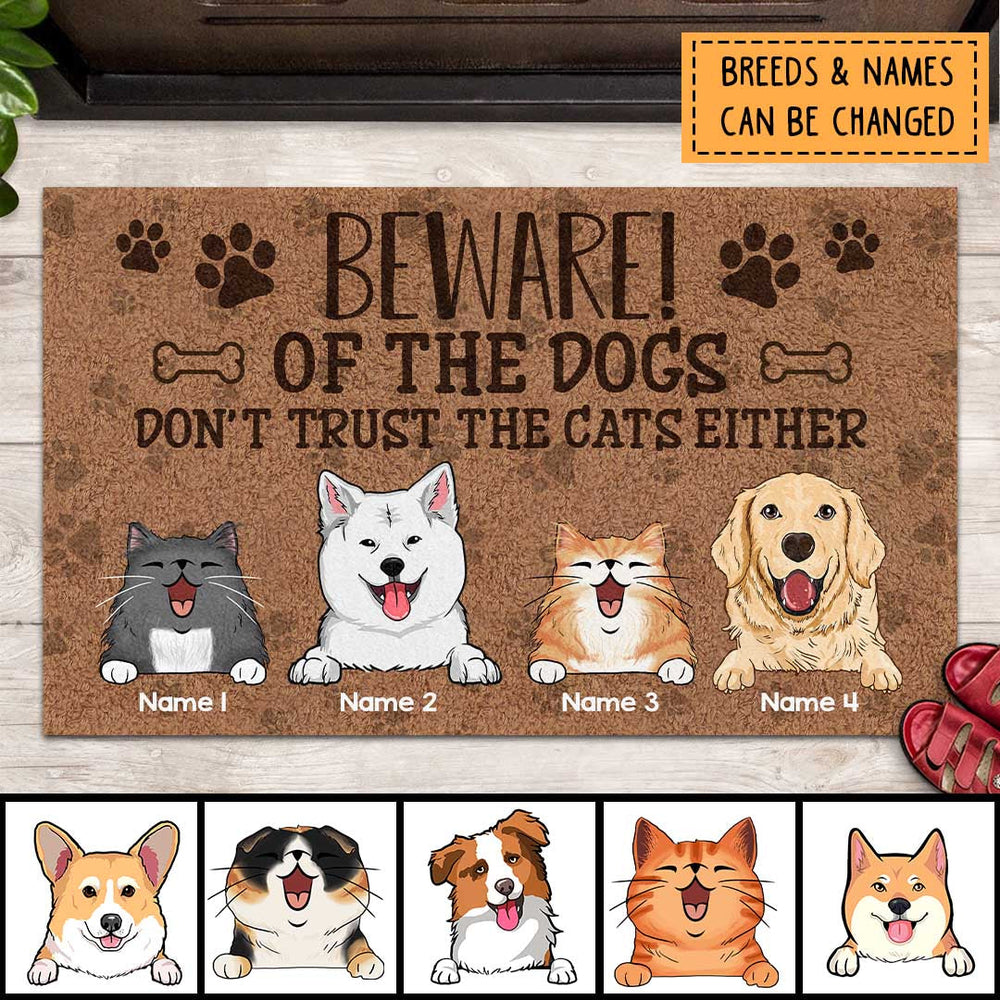 Beware Of The Dogs Don't Trust The Cats Either, Warning Doormat, Personalized Dog & Cat Doormat