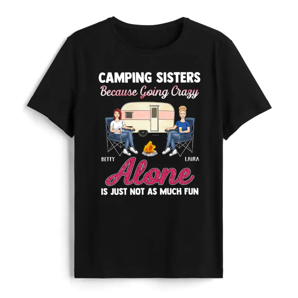 Camping Sisters Because Going Crazy Alone Is Just Not As Much Fun - Personalized T-Shirt, Gift For Besties