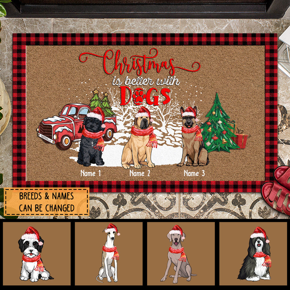 Christmas Is Better With Dogs, Christmas Tree & Red Truck, Personalized Christmas Dog Breeds Doormat