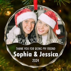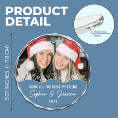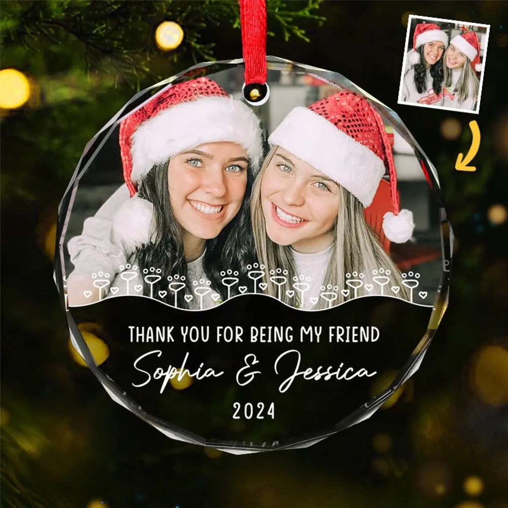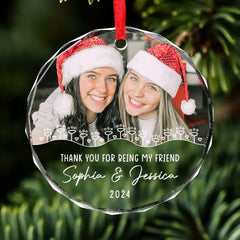 Custom Photo I Feel Grateful For Having You - Bestie Personalized Custom Circle Glass Ornament - Christmas Gift For Best Friends, BFF, Sisters