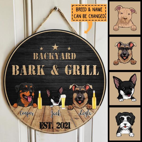 Dog Backyard Bar & Grill Sign, Backyard Home Wreath Black Background, Personalized Dog Breed Door Sign