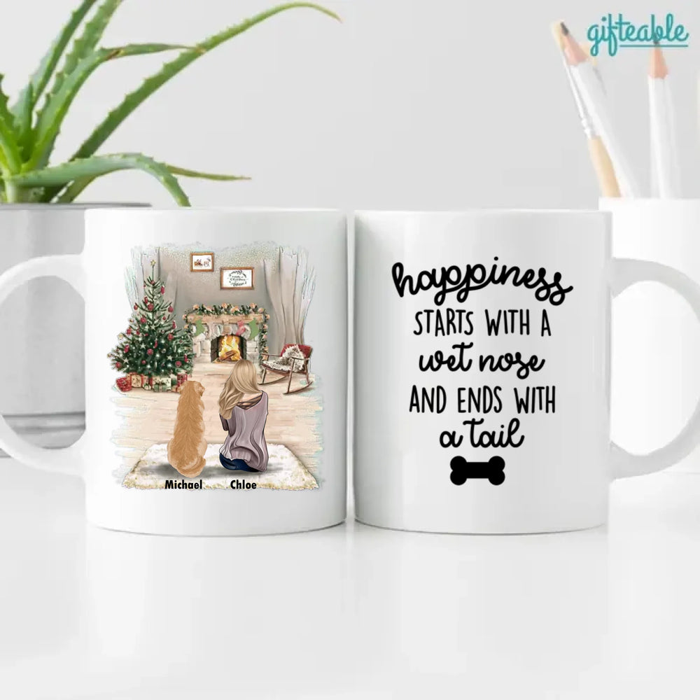 Girl And Dogs Personalized Ceramic Mug - Girl, Dogs, Names, Background and Quote can be customized