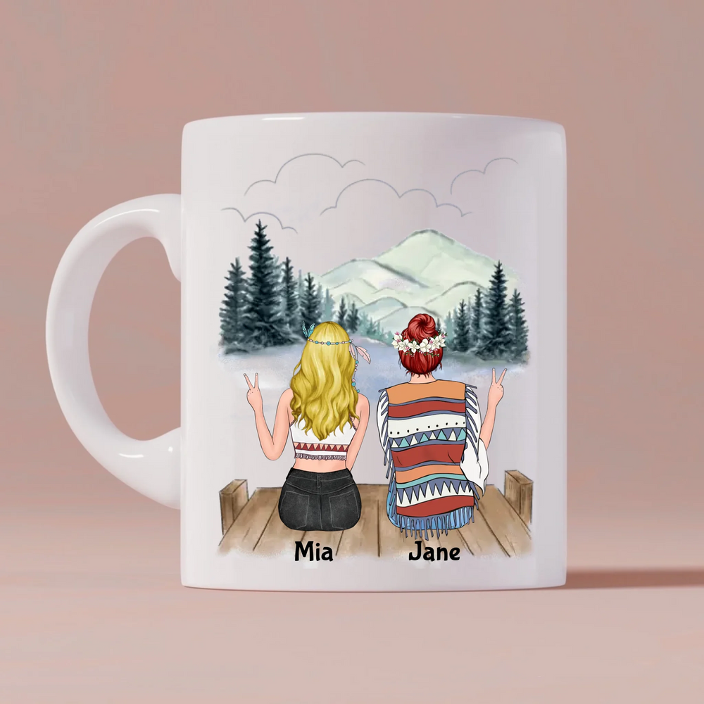 Hippie Friends Personalized Mug - Name, skin, clothes, accessories, quote, background can be changed