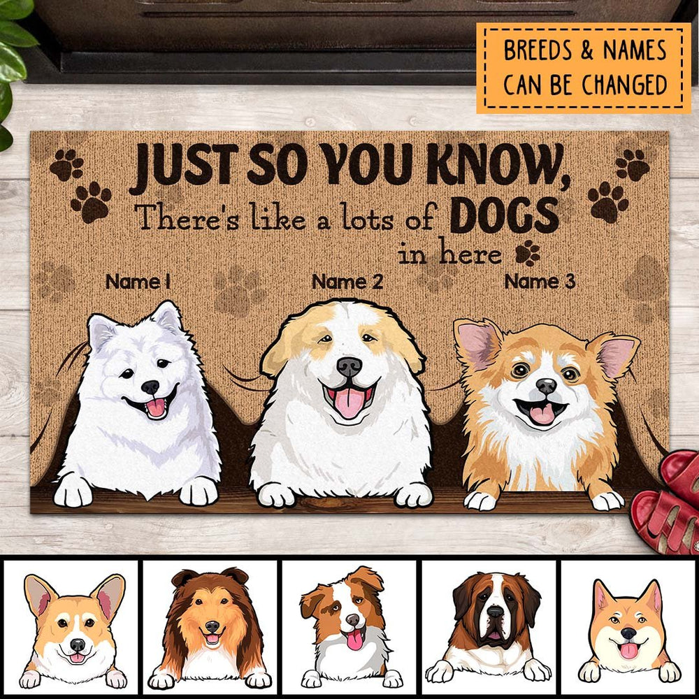 Just So You Know There's Like A Lot Of Dogs In Here, Peeking From Curtain, Personalized Dog Breeds Doormat