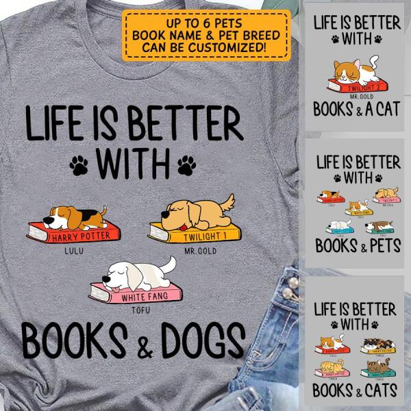 Life is better with books and dogs - dog, cat personalized T-Shirt TS-GH161