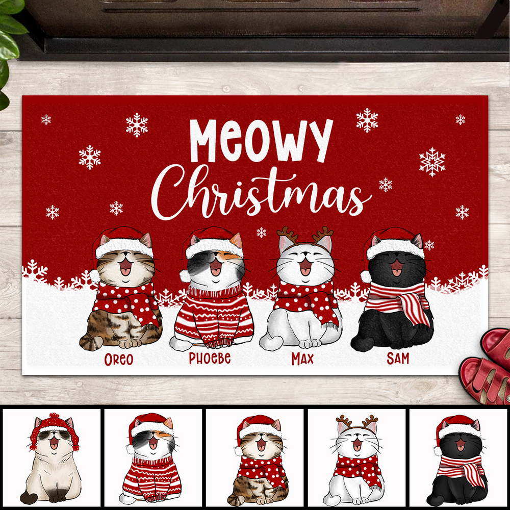 Meowy Christmas, Cat Welcome Mat Funny, Housewarming Gift, Rustic Home Decor, Personalized Cat Lovers Doormat