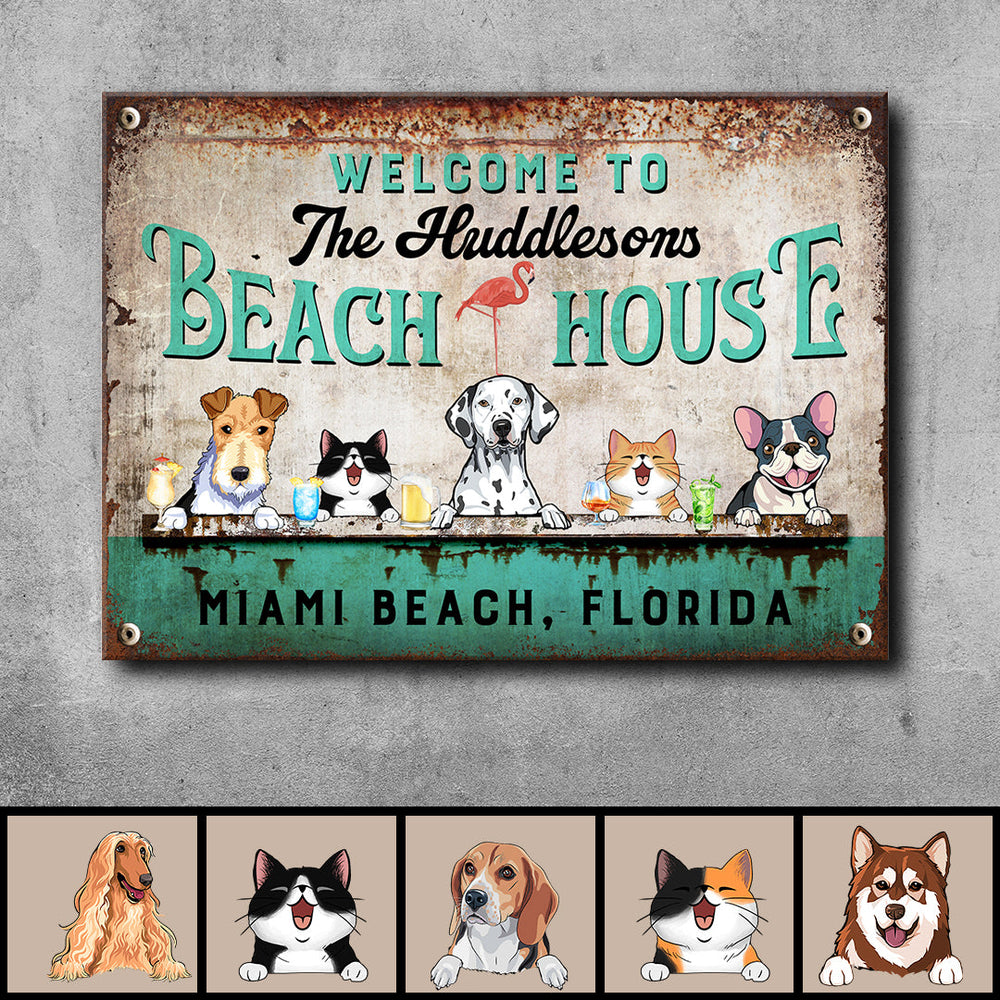 Metal Welcome Signs, Gifts For Pet Lovers, Welcome To Our Beach House Personalized Home Sign