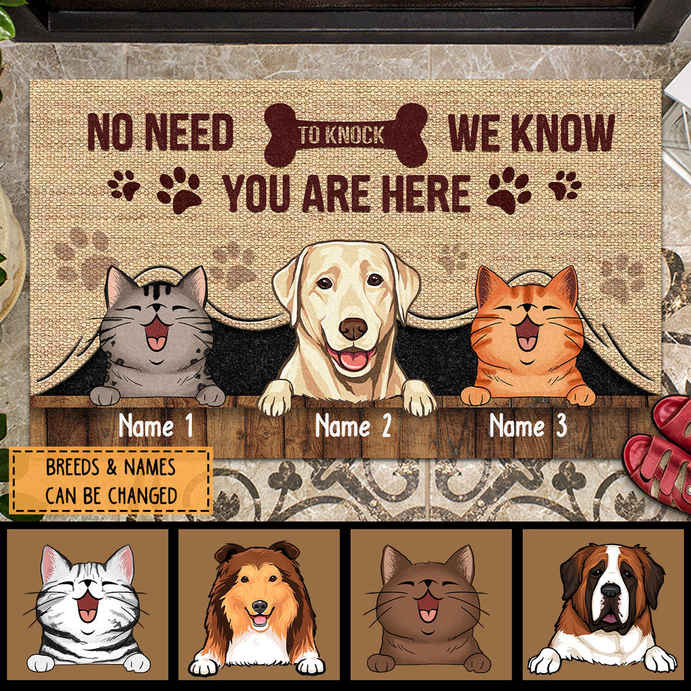 No Need To Knock We Know You Are Here, Canvas Curtain Background, Personalized Dog & Cat Breeds Doormat