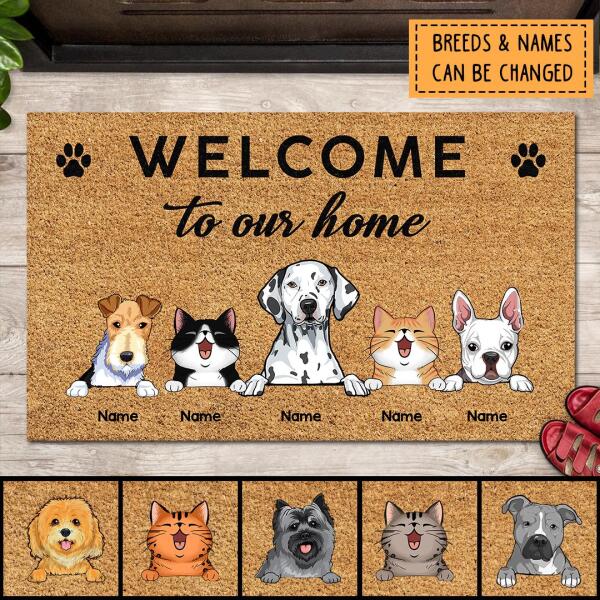 Welcome To Our Home Custom Doormat, Gifts For Pet Lovers, Personalized Housewarming Gifts