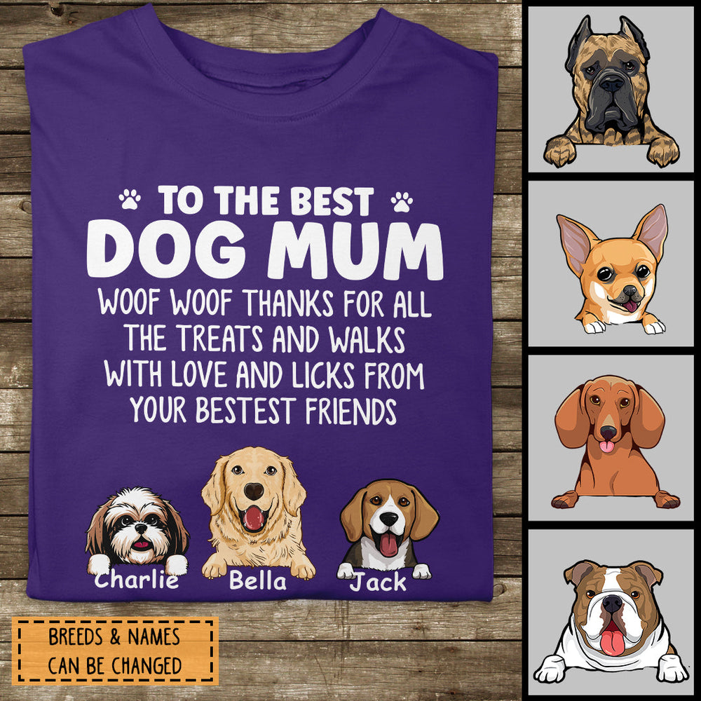 Personalized Dog Breed T-shirt, To The Best Dog Mum Woof Woof Thanks For All, Funny Gifts For Mother's Day