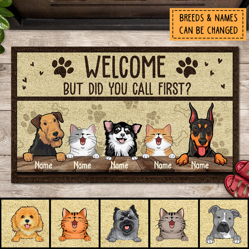 Welcome But Did You Call First, Pawprint & Heart, Personalized Dog & Cat Doormat, Home Decor, Gifts For Pet Lovers