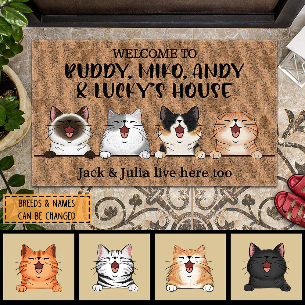 Welcome To My House The Human Live Here Too, Brown Doormat, Personalized Cat Breeds Doormat, Gifts For Cat Lovers