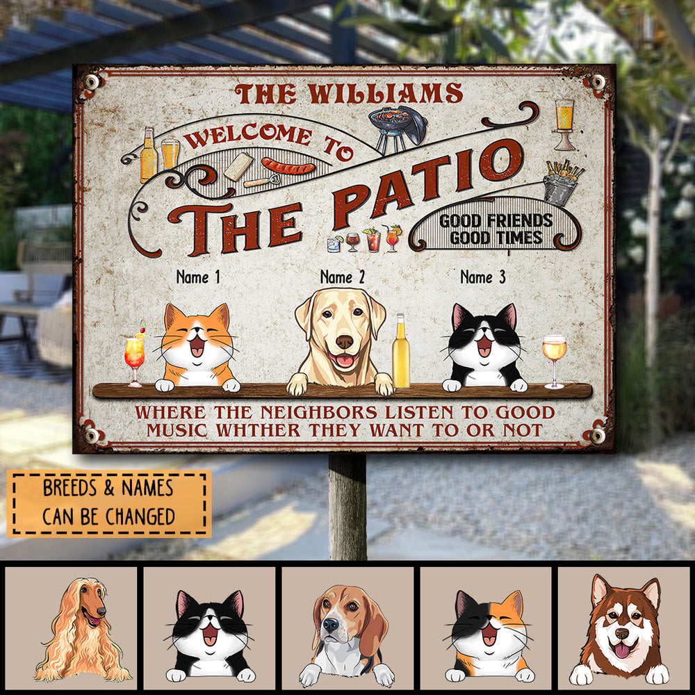 Welcome To The Patio, Red Sign, Personalized Dog & Cat Metal Sign, Gifts For Pet Lovers, Outdoor Decor