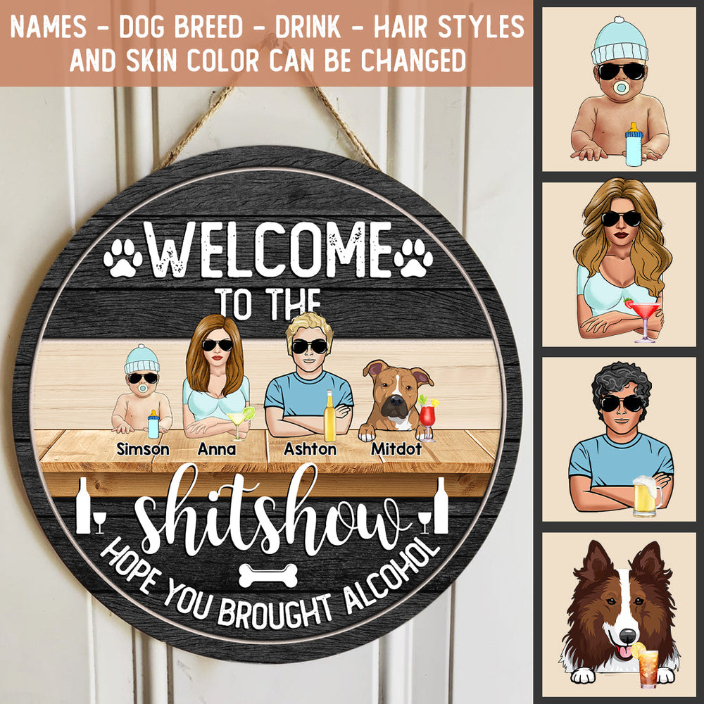 Welcome To The Shitshow Hope You Brought Alcohol, Cool Family Style, Personalized Dog & Cat Door Sign
