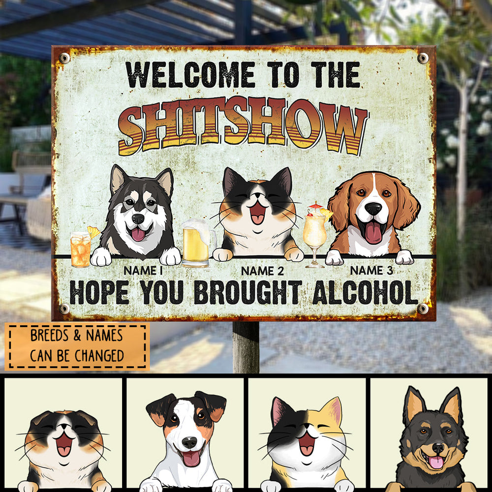 Welcome To The Shitshow Hope You Brought Alcohol, Personalized Dog & Cat Metal Sign, Outdoor Sign