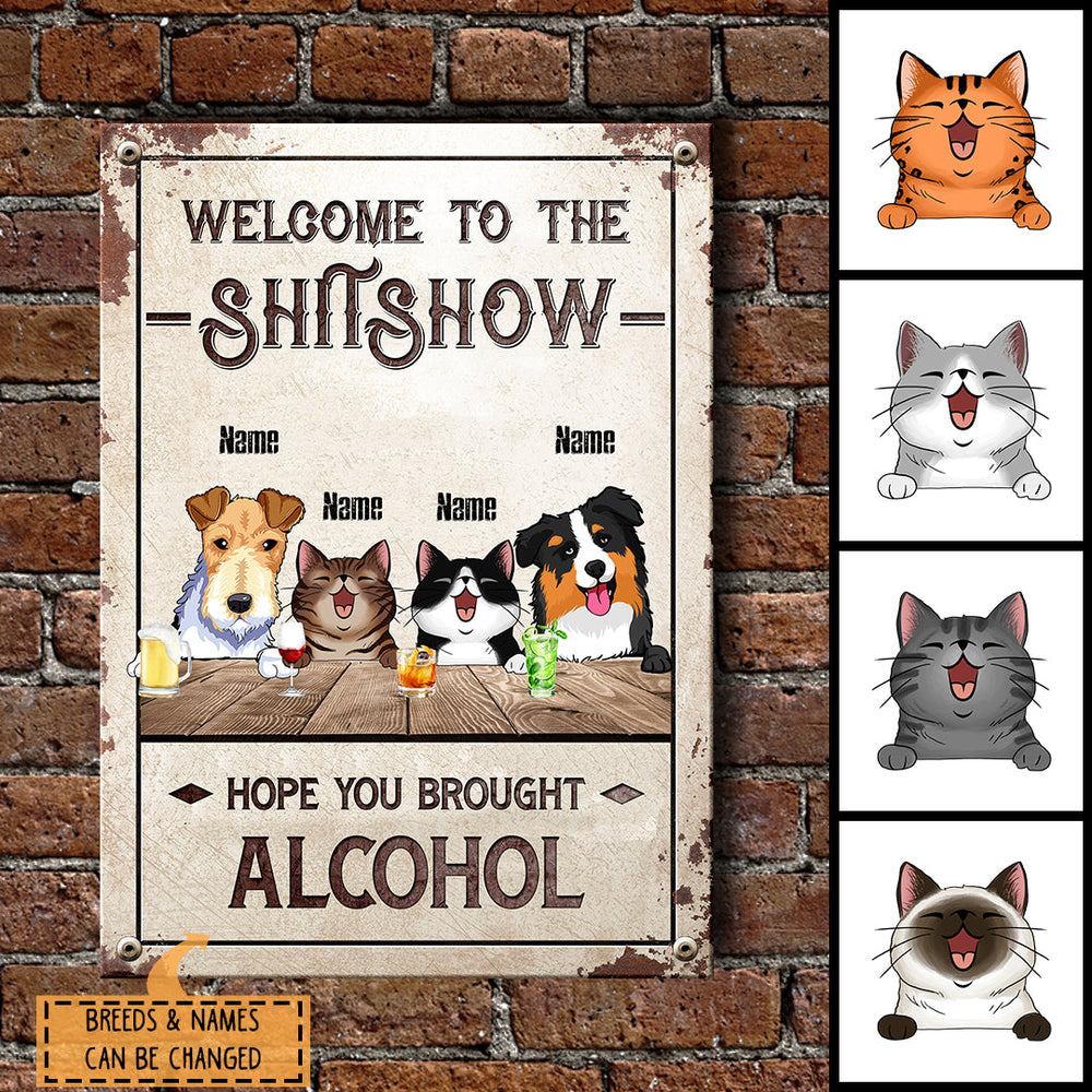 Welcome To The Shitshow Hope You Brought Alcohol, Welcome Sign, Personalized Dog & Cat Metal Sign, Outdoor Decor