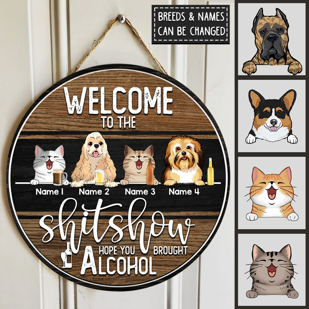 Welcome To The Shitshow Signs, Gifts For Pet Lovers, Hope You Brought Alcohol, Dog & Cat Custom Wooden Signs